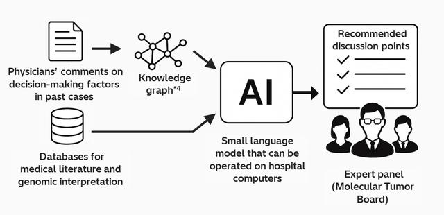 Tohoku University Hospital, Hitachi, and Hitachi High-Tech have jointly developed an artificial intelligence (AI) technology that supports preparation for expert panels*1 (EPs; equivalent to Molecular Tumor Boards (MTBs)), specialized meetings for clinically interpreting genetic test results in cancer genomic medicine.*2 The technology references past comments from physicians, related knowledge, literature databases, and other sources to present points for confirmation and discussion at EPs, including potential treatment strategies, along with supporting evidence.*3 Besides enabling smoother confirmation and discussion during EPs, the technology is expected to shorten the time required to collect and organize information during the preparation phase, helping reduce the workload on physicians. In addition, the system is designed to operate locally on hospital computers in anticipation of usage in operating environments where sensitive information is expected to remain within the hospital. In an evaluation test of the technology using past cases from Tohoku University Hospital, more than 80% of the treatment strategy–related content in the confirmation and discussion points presented by the technology was consistent with the corresponding treatment strategy-related discussion points identified in the EP reviews. Going forward, the three organizations will continue to validate and develop the technology with partners, aiming to contribute to the broader adoption and better quality of cancer genomic medicine by alleviating the burden on healthcare professionals.